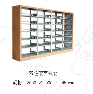 五層雙柱雙面鋼木書架LH—023